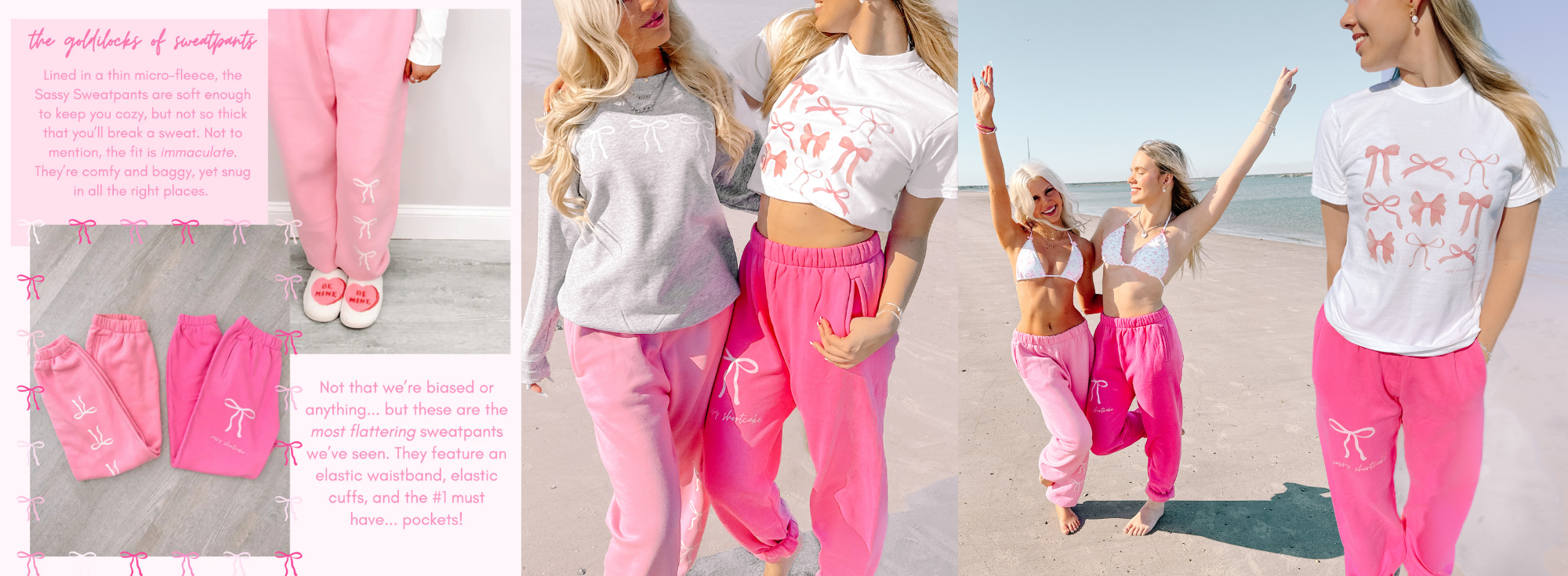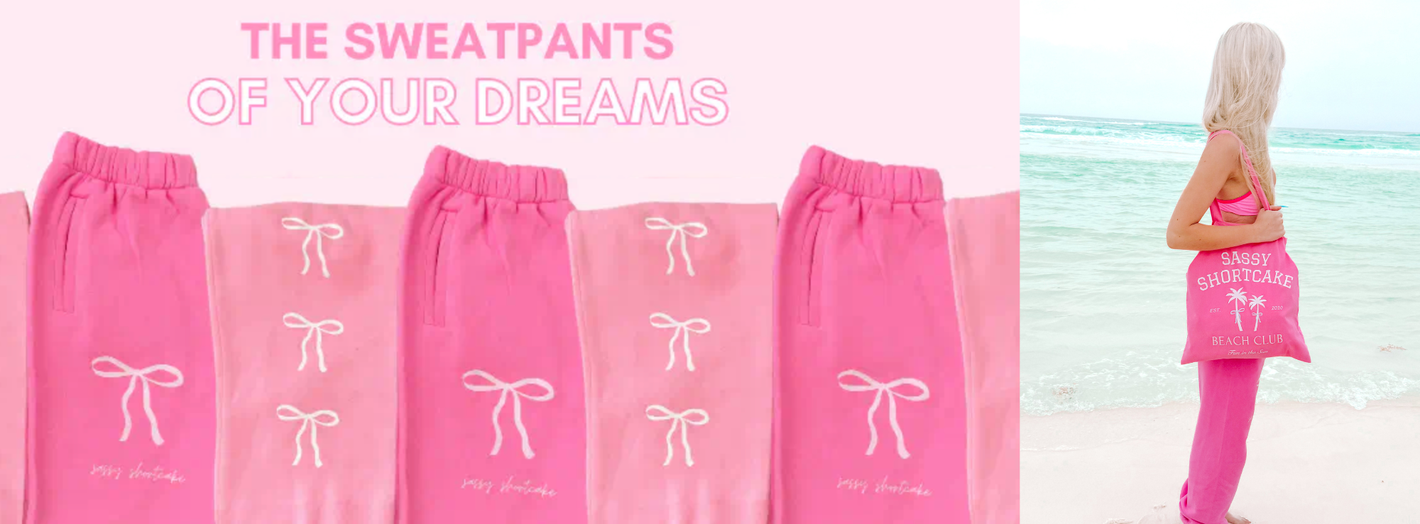 Take a peek at our newest Sassy Shortcake merch item! The Blushing Bow Sassy Sweatpants are pink and feature three white bows text. These sweats feature an elastic waistband and pockets for maximum comfort, and feature a soft micro-fleece lining. Rep your favorite brand in these super cute pants!! Also available in blue and grey.