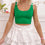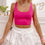 The Clara Red Top from Sassy Shortcake is a round neck cropped tank style top. Available in hot pink, kelly green, light pink, lilac, and white. Can be worn with the matching Clara skirt.